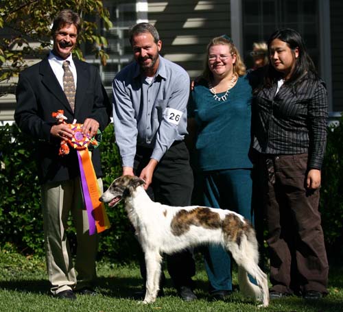 Sony had a stellar debut in the show ring at Boofest 2005's Western regional Specialty where she was awarded Best Puppy in Show and Best in Show. Joyce and I have yet to recover! I hope that she show equally well in the future and I can't wait to try her in some performance events.